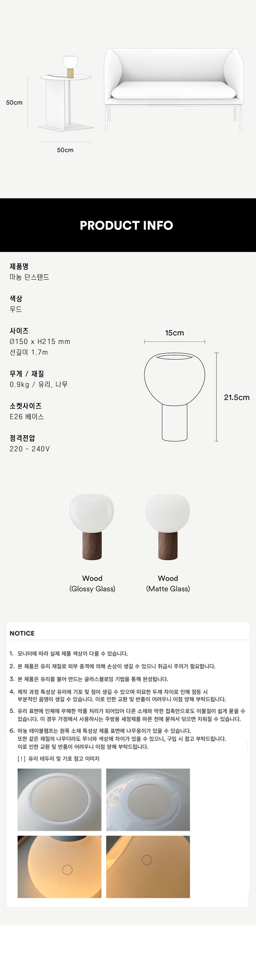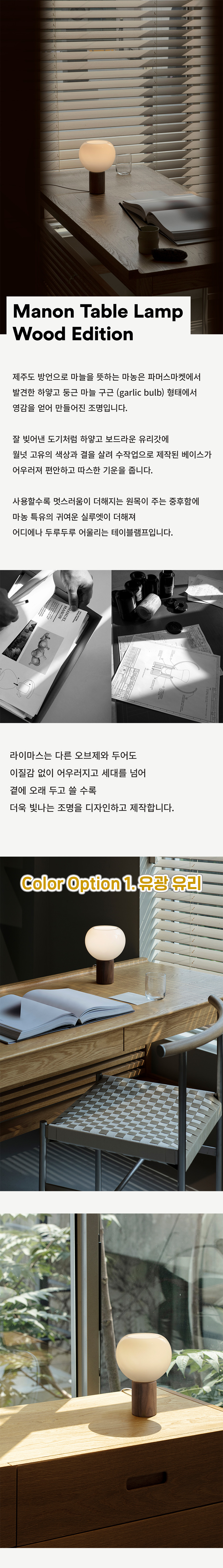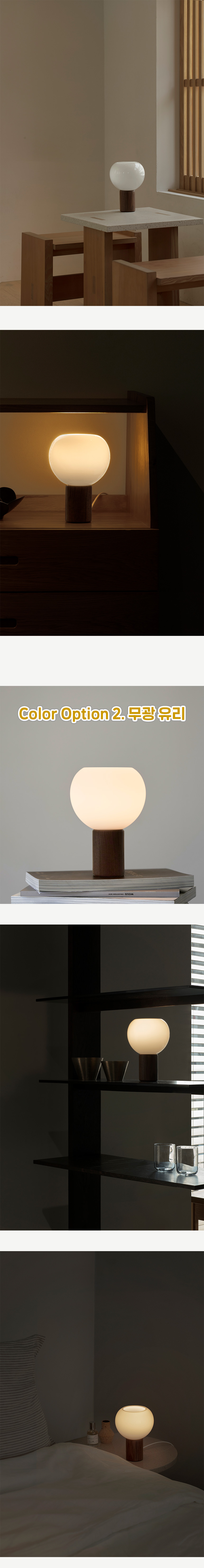 하얗고 둥근 유리갓과 원목의 조화