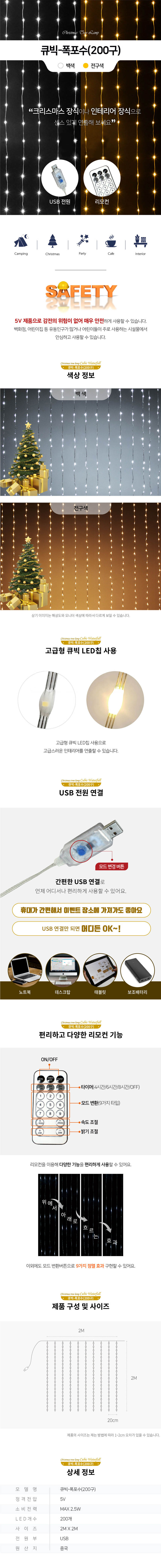 5V LED 큐빅 폭포수 200구 2*2M (USB/리모컨)
